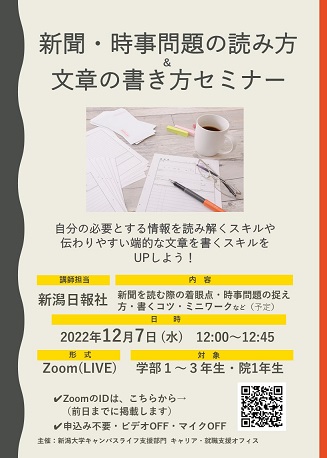 ■内容:新聞を読む際の着眼点・時事問題の捉え方・書くコツ・ミニワークなど